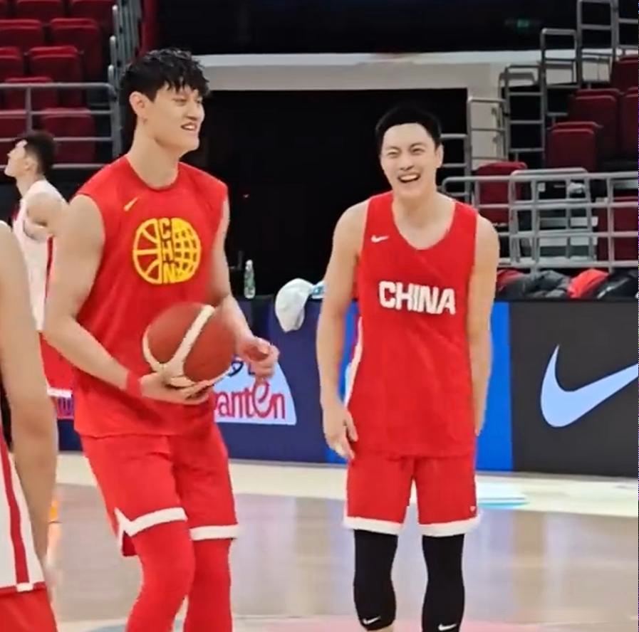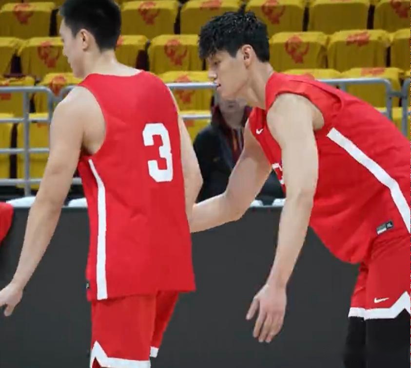 在之前男篮公开训练的时候,当时胡明轩和曾凡博就是被大家提到的一个话题。因为他们两个一起比拼三分,而且整个过程基本上都在一起,这也证明了他们两个的感情非常好。来到今天踩场训练,他们两个又黏在一起了。