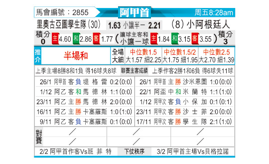 [阿甲] 里奥夸尔托学生队vs阿根廷青年人