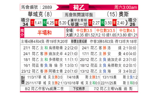 [荷乙] 瓦尔韦克vs奥斯