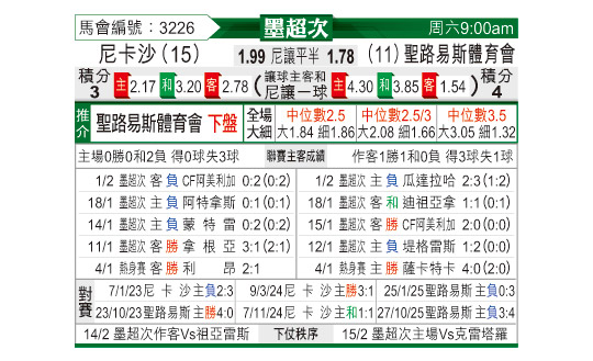 [墨超] 内卡萨vs圣路易斯竞技