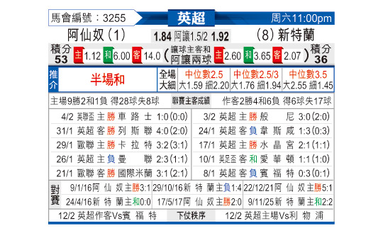 [英超] 阿森纳vs桑德兰