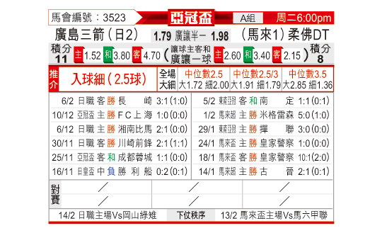 [亚冠] 广岛三箭vs柔佛