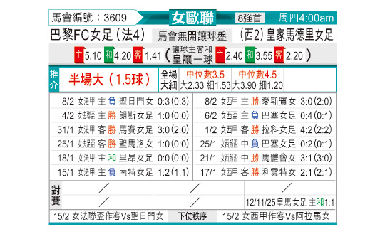 [欧女杯] 巴黎FC女足vs皇家马德里女足