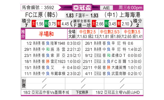 [亚冠] 江原FCvs上海海港