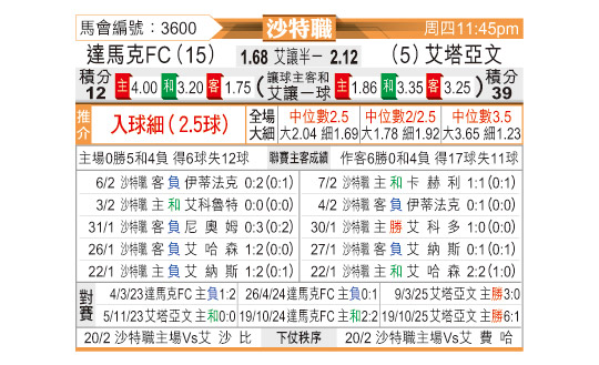 [沙特联] 达马克vs布赖代合作