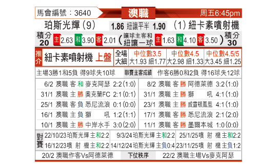 [澳超] 珀斯光荣vs纽卡斯尔喷气机