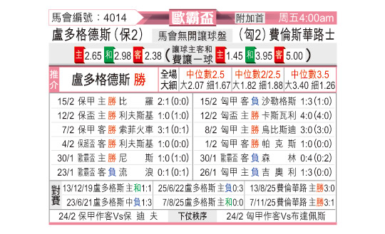 [欧联杯] 卢多戈雷茨vs费伦茨瓦罗斯