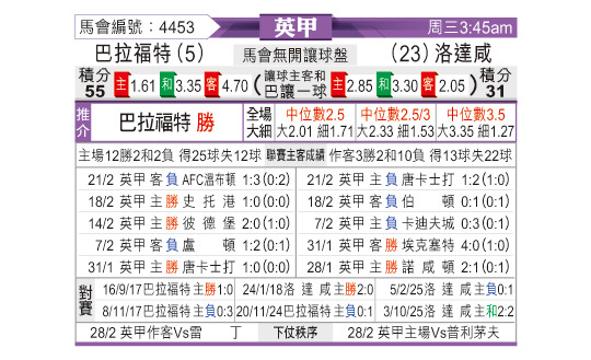 [英甲] 布拉德福德vs罗瑟汉姆