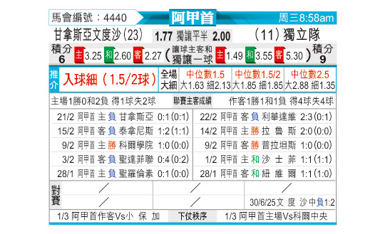 [阿甲] 甘拿斯亚门多萨vs阿根廷独立