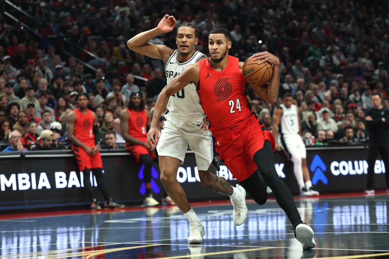开拓者队阿夫迪亚37分6篮板8助攻、格兰特13分、夏普11分5篮板、卡马拉10分5篮板、威廉姆斯10分5篮板4盖帽、克林根9分11篮板,杨瀚森1篮板;马刺队福克斯37分6篮板8助攻3抢断、瓦塞尔23分6篮板、巴恩斯13分5篮板3抢断、尚帕尼12分11篮板2盖帽、凯尔登11分10篮板。