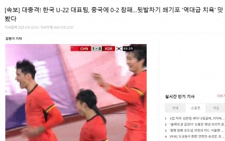 韩国男足输给中国男足,脸都不要了?韩国媒体:简直就是耻辱!